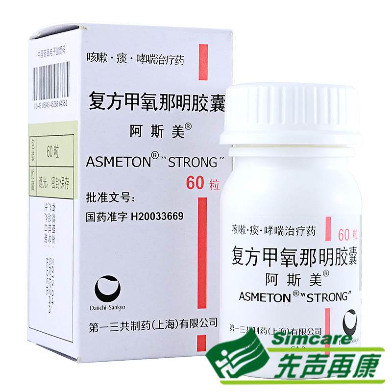 阿斯美复方甲氧那明胶囊60粒