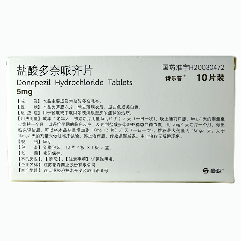 首页>全部商品>专科用药>心脑血管>记忆力减退>诗乐普 盐酸多奈哌齐片 10片
