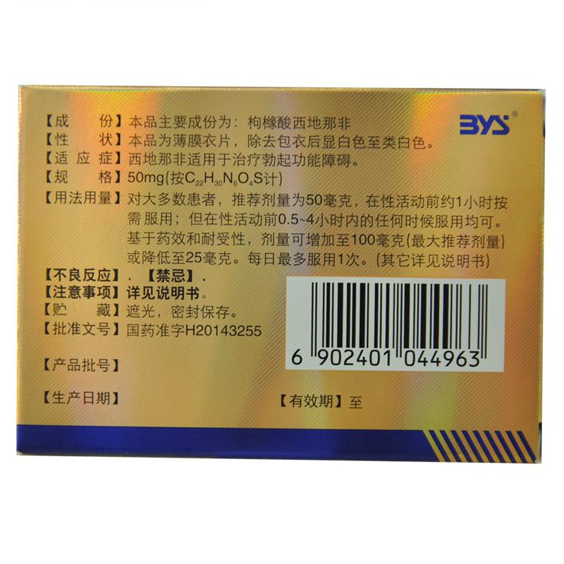 | 枸缘酸西地那非片说明书 | ||||