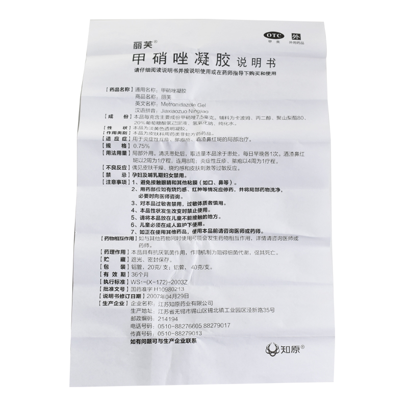 首页>全部商品>专科用药>皮肤性病>痤疮痘痘>丽芙甲硝唑凝胶20g